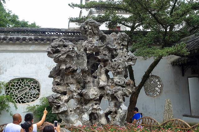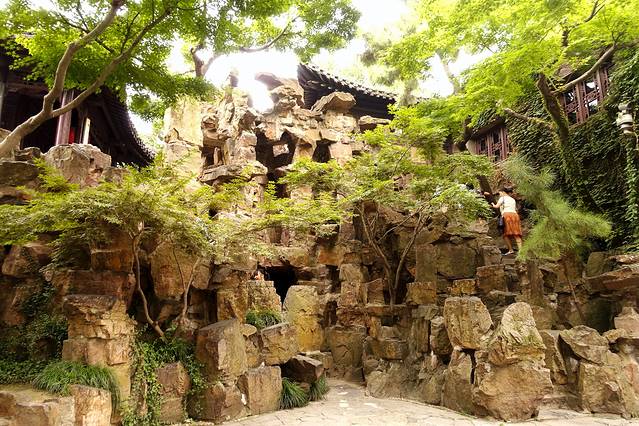 拙政园乃是官员辞官回家养老所建的,而狮子林是为高僧所修,多出了一份禅意。狮子林的假山最为出名,九狮峰院里面的一大片的假山,沿着小径走进假山,确实是走到假山里面去。假山内部又修有台阶,顺着爬上假山,然后小径四向蔓延四向蔓延,一不小心还要迷路在假山迷宫里面。