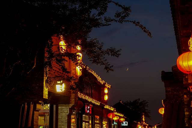 沿着东关古渡老街一直走到头可以登上东门俯瞰整个东关街,一轮弯月正缓缓升起。