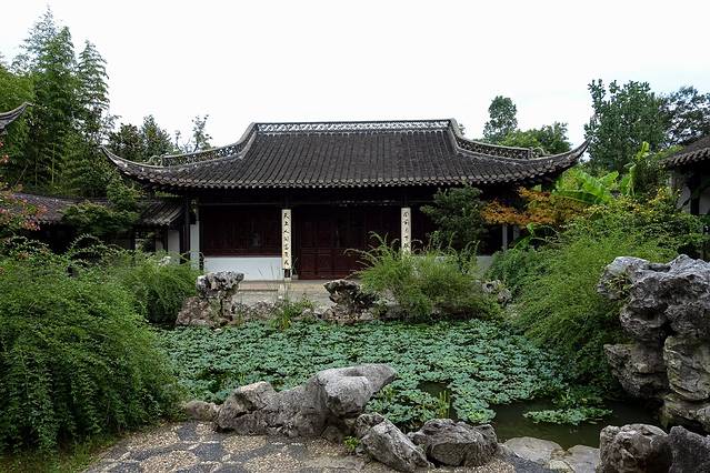 拙政园是苏州存在的最大的古典园林,占地78亩(约合5.2公顷)。全园以水为中心,山水萦绕,厅榭精美,花木繁茂,具有浓郁的江南汉族水乡特色。花园分为东、中、西三部分,东花园开阔疏朗,中花园是全园精华所在,西花园建筑精美,各具特色。园南为住宅区,体现典型江南地区汉族民居多进的格局。