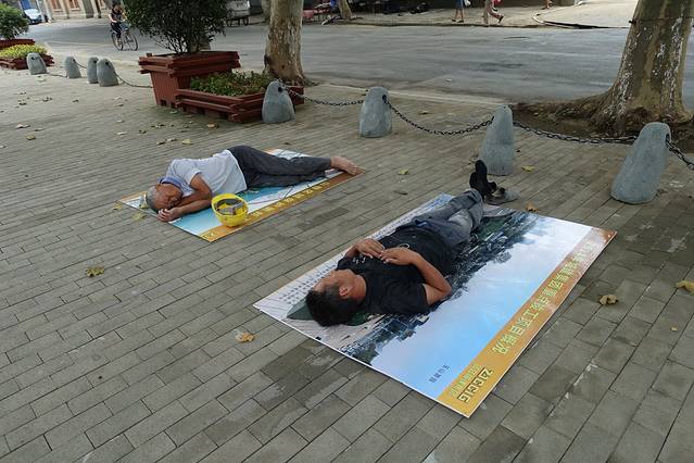 当时半个西津渡是个大工地,很多地方都在修缮,路上也不时会遇到干活的工人们,中午休息的时候没有别的去处就直接在路边铺个板子就睡下了。因为他们的辛苦才换来越来越好的市容市貌,当下就让他们好好的睡一觉吧。