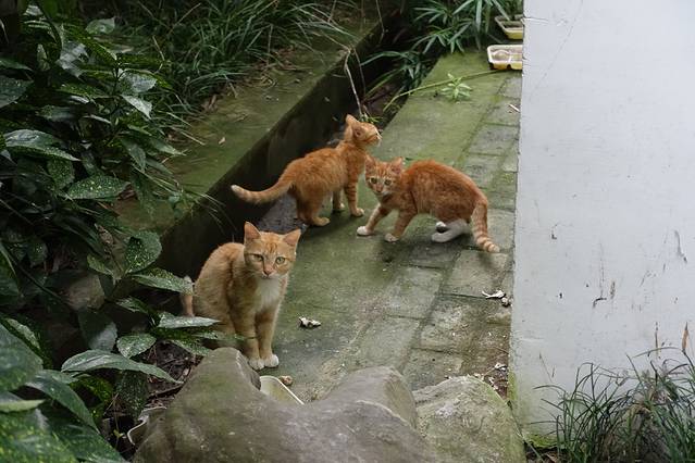 在某个角落里偶遇的三只小猫,这几只可不如虎丘的那只慵懒的躺在地上不肯走。他们警惕的盯着我,在我赶紧拍了一张之后就跑的无影无踪了。