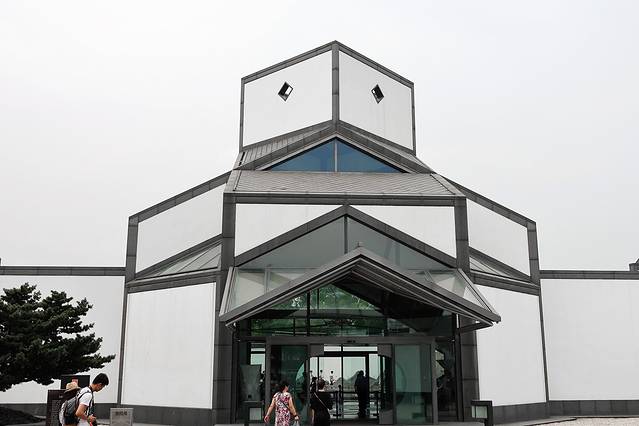进门就是博物馆的主厅,特别的几何形集合结构,往左走过走廊是主要展馆,右边另一块展馆和工作区。
