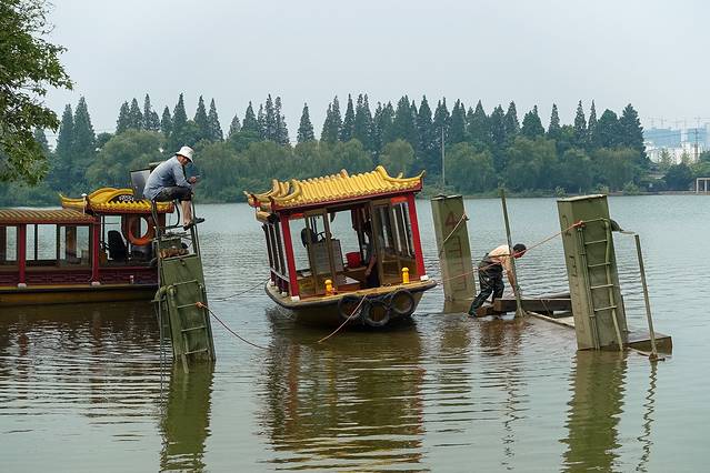 坐公交到周家村进门,门票加上船票一共110,进门没几步就是码头,坐着游船一路走一路游就是了,各个码头会让你在公园里绕上一圈回来,基本的景点也就全都逛完了。大概是8月大夏天的季节并不是很对,没有鲜花也没有水鸟 芦苇荡也是不见踪影,太阳晒得人也没什么脾气。