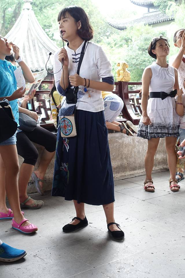 苏州的导游妹子们都是身穿特制的衣服的,而且每个园子的似乎都不一样,非常有江南特色,有没有冲上去合个影来着。