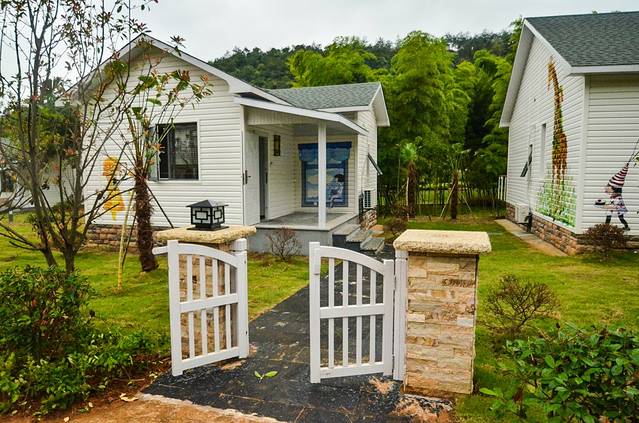 清澈的小溪贯穿整个山谷,狭长的山谷里尽是潺潺流水和蔬果飘香。初入园区,映入眼帘的是在竹林间的一幢幢白房子,翠竹白墙,相得益彰。这里就是绿野仙踪的高科技现代农业大棚。