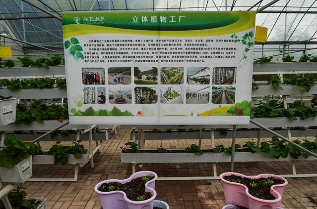 走入另一个大棚,这里种植的同品种樱桃树姿态却各不相同。这里的UFO根限栽培种植技术是和上海交大一个教授合作的项目,主要是把果树的根枝限制在一个区域,通过密植提早果实的盛果期。当这里,蔬果长得枝繁叶茂,就会形成一个天然的植物迷宫,将立体种植和娱乐性相结合,还是国内首创的一个科技示范型项目。这样的科技农业项目,既是企业高产出的生产设施,也是长兴科技推广、科普的重要基地,同时还是休闲农业的一大特色旅游产品。