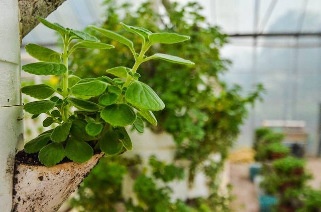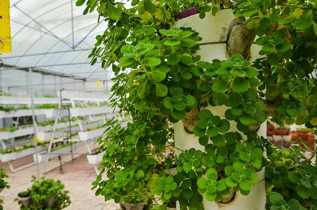 在这里,没有传统的农耕,取而代之的是立体植物工厂。顾名思义,这里的农田都是立体化的,层层叠叠。A字架和立柱式栽培都是新型的无土栽培方式,这样能够有效节约空间。现在绿野仙踪这样的新型种植面积200多平方米,但是产值却相当于普通种植近4亩地。其次,这里采取的是半智能化管理,它的滴灌时间、水肥间隔次数都是通过电子设定,有一套严密的灌溉施肥体系。同时,土壤下有一套回流管道,将水分回收,避免污染。立柱式栽培还有一个好处就是,每一根管都可以进行更换,十分方便。