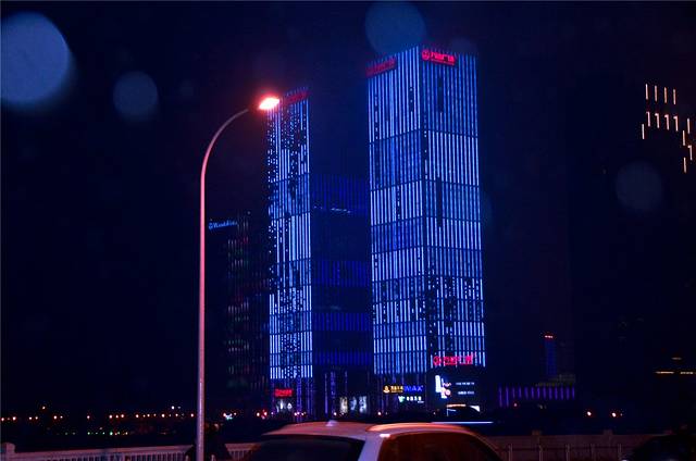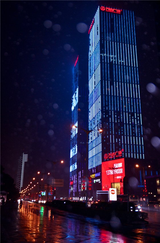 下了桥就是“万达广场”,全国所有地方的万达都差不多,也没有什么特别。只是在这个雨夜格外亮眼。