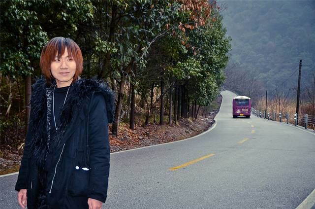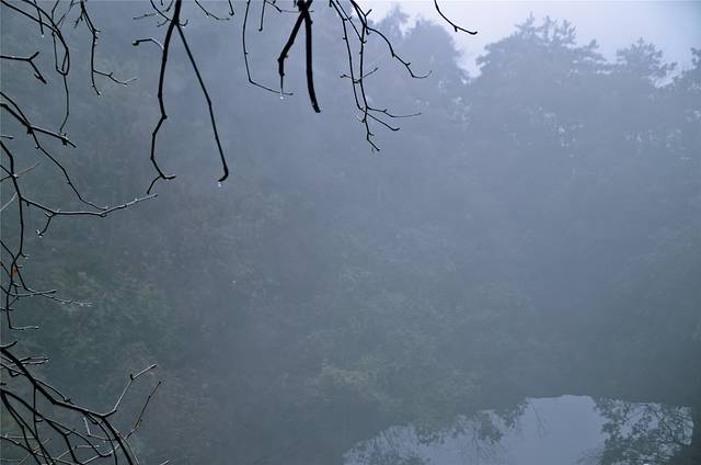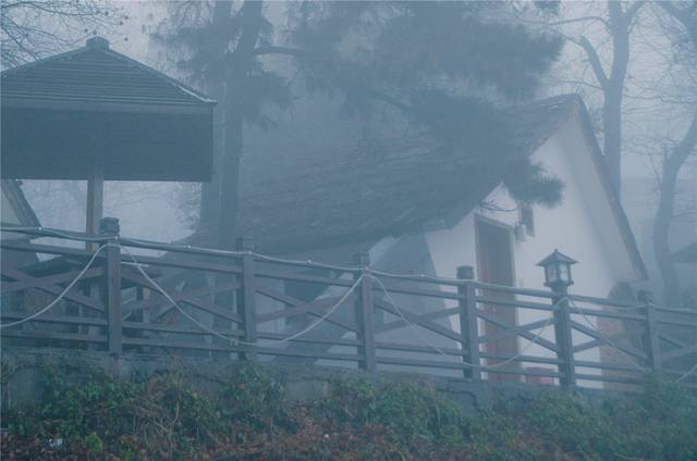 雾气蔓延的很快,刚过了桥,山就被雾全部遮上了,我们完全什么都看不到,看到的就是很纯正的白色。