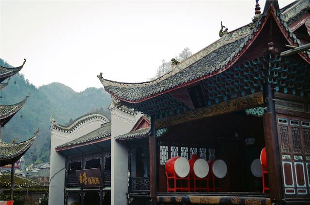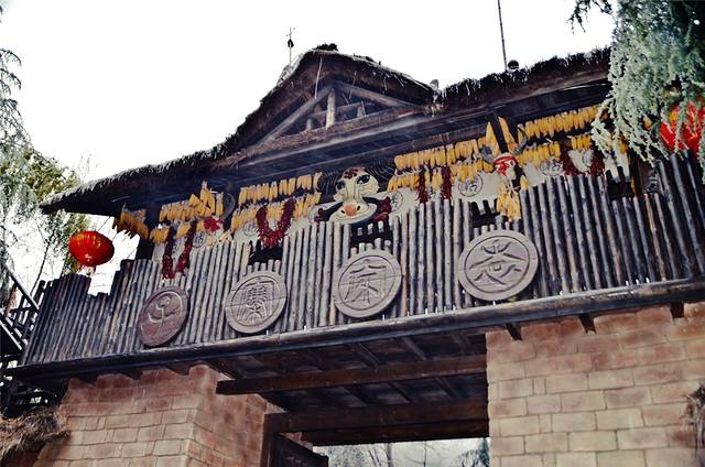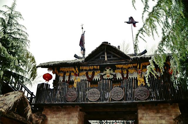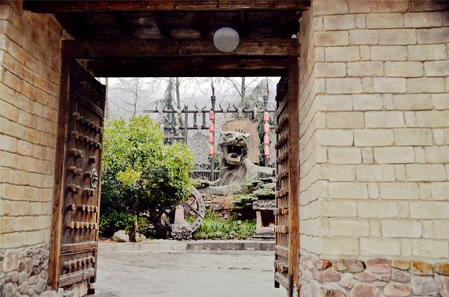 接下来的一站本来是预定行程没有的。【袁家寨子】,如果是散客还需要购票进入的。位置就在自助餐厅对面。据说这里是古代袁家界寨主的寨子被完整地保留下来,整体风格颇有农家乐的味道。还没进门就看到寨子无比气派,巨大木门上嵌有铜狮子。门外一块石头上刻有朱镕基总理题词,导游说总理很少会给景区题词,这里绝对是个例外。看了一些资料,曾经这里大搞旅游业,山上被搞得乌烟瘴气,总理在2001年对其进行了严格治理。