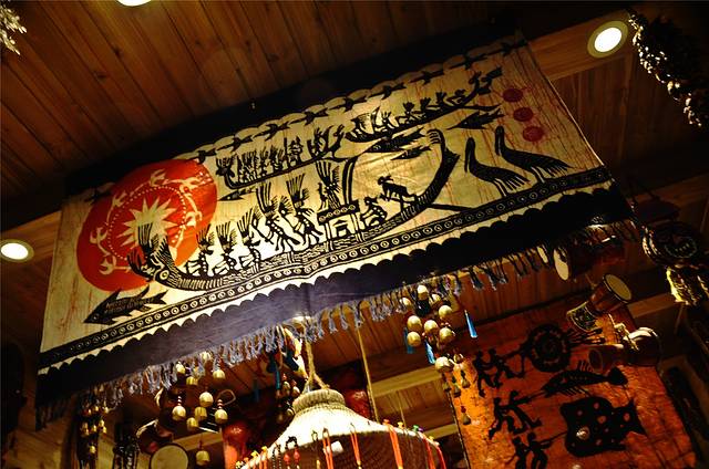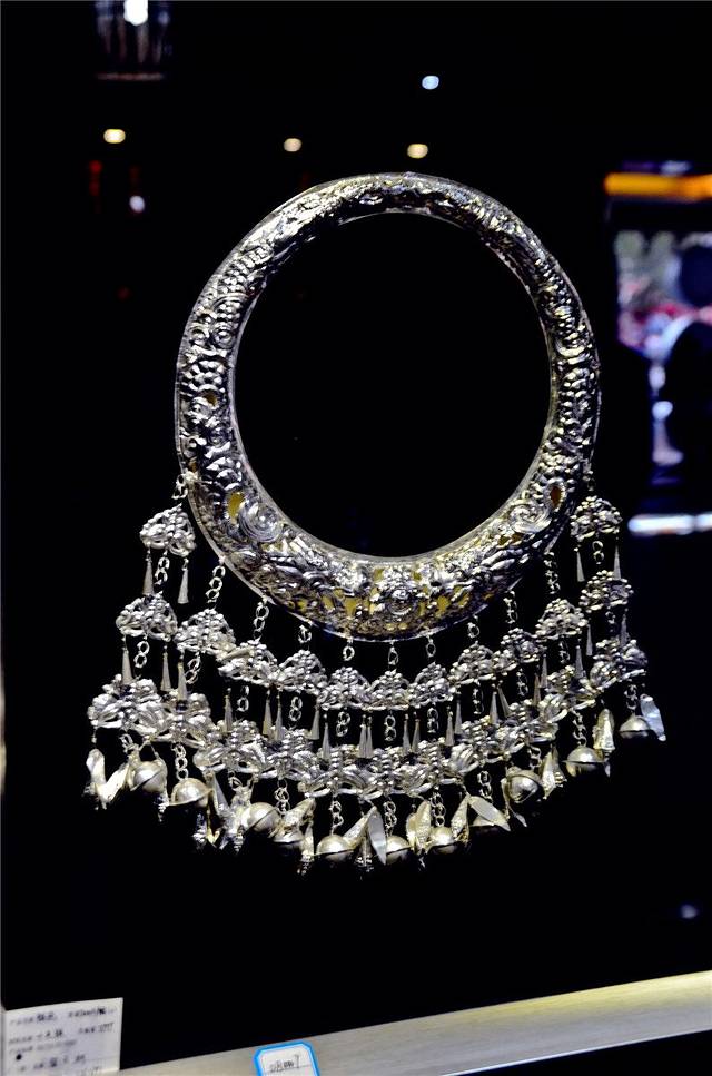铜牛旁的“苗族银饰博物馆”是一个银子的海洋,里面除了展示不胜枚举的银制品,还可以买到各种银质的小玩意。国家专门供给这里的S999银就放在进门的一条过道下,进去的游客都可以“踩”这条银大道。