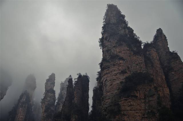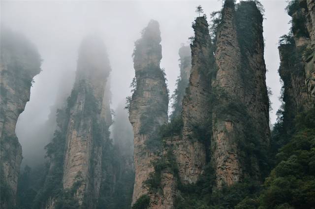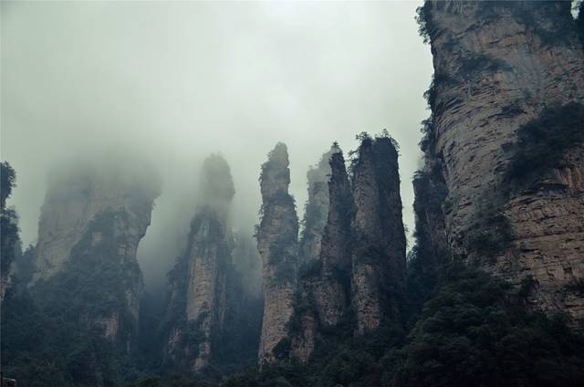 张家界那是一个“三千奇峰拔地而起,八百溪流蜿蜒曲折,融峰,林,洞,瀑于一身,集秀,幽,野,险为一体,可谓五步一个景,十步一重天’,被中外游人誉为‘扩大的盆景,缩小的仙境’。”