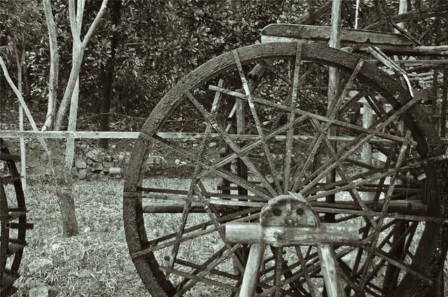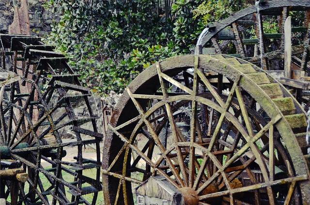 沿中间的小路走一百米,便进入了【黄龙洞】的购票长廊,长廊两遍有各式各样大大小小的水车,样子既新颖又精致,之前都没有见过,不确定这些水车究竟只是为了美观还是真的有其作用。