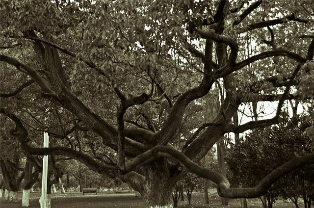 上山前我先走访了【湖南大学】。因为只有一天时间,不可能走遍所有想去的地方,【湖南大学】和【湖南师范大学】我最终选择了前者。原因是【湖南大学】就坐落在【岳麓山】脚下,校园环境非常的好,有意思的是大学并没有印象中的大门与围墙,下了车就看到学校的“体院场馆”还有“图书馆”,街道尤为幽静,很像拍偶像剧的地方。我在路旁找了两个路人询问大学的大门在哪,但对方也是游客,也有同样的疑问,最后我问了一位当地的阿姨,(说是阿姨,其实年纪也不算大,也许是打扮的成熟些)人非常亲切,清楚地告诉我【湖南大学】是没有校门和围墙的,整个大学就是这样一座开放式街区,只有往前边走临江可以看到一个刻着“湖南大学”的小建筑。好像整个小城就是一个大学。 之后她还主动介绍了一下之后我要去的【岳麓山】。
