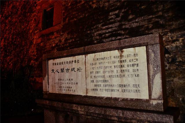 来到“天心阁”,我有了新的发现,最早来到长沙,我印象中长沙没有坡路,我觉得这里是平原,但是也有点疑惑,江对面就是山,这里竟然都是平地?走近“天心阁”,尤其是城南西路就发现有很多坡路了。“天心阁”由围墙围着,现在叫“天心公园”,我走的方向是先看到的“天心阁”,但是并没有看到大门,绕了一圈才看到的园子门。这里有售票窗口收门票的,不过这个时候售票口早已经下班了,但是园门还是开着,我起初以为晚上就不收门票了,便进去了。