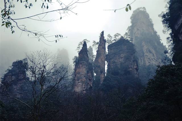 昨天起就担心今天天气不会好,果不其然清晨天空飘起了小雨。大巴车拉着我们来到了【武陵源】。