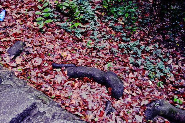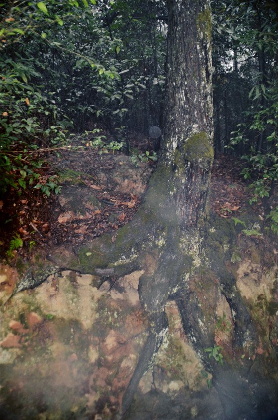 深山中地上若隐若现的大树根型如大蟒蛇,不知道它多少岁了。