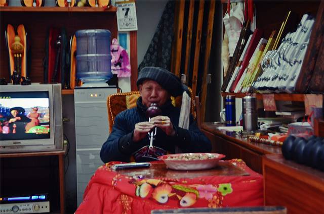 我们中午吃饭的地方就在景区旁边,非常近。当地开发旅游业太过成熟的原因,周边开辟了很多小旅馆、小饭馆、农家乐。吃饭的地方非常阴冷!大家都没有脱外套,没吃多少就出来了,因为外边还更暖和些。“2姐”很担心晚上就住在这里,跑去向导游核实,好在答案让人放心了。