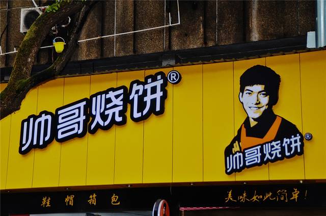继续走另一条山路,到达山门之前的小路的两侧路边有很多开门做生意的小店,形成了一条短短的商业街,这条街还有个很怪的名字“堕落街”,很多品牌店都是我没有见过的。最吸引我注意的当属这家“帅哥烧饼”店,当时我觉得招牌上的帅哥好像韩剧《继承者们》里的男二号,后来得知“帅哥”就是老板本人。据说这家烧饼的味道很好,有独一无二的中式汉堡包,闻名远扬,还上过很多电视节目,不管什么时候来都会看到排长队的画面。很遗憾当时没有品尝一下。