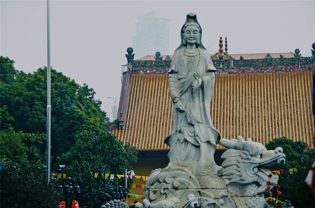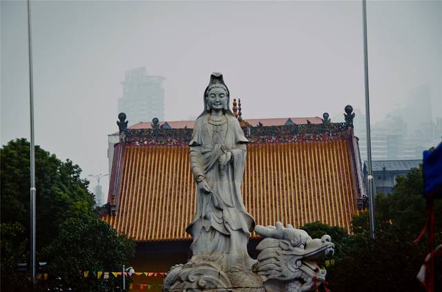 寺院临江而建,不远就是“银盆岭大桥”。【开福寺】虽然是长沙最有名,也是佛教传入湖南的首座寺院,但并没有想象中的宏伟,整座寺院拜一遍快的话大概二十分钟。特别的是寺院布局并不如传统的一字型结构,而是山门两侧又有大殿,爸爸说大殿的布局方位可能是依据风水。