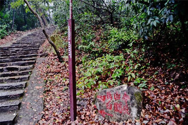顺着路旁标示找到通往【麓山寺】的小路,走了几步发现了“人”字型岔路,木质的“路标”好像被人破坏了,只有柱子,路牌不见踪影,目光顺着柱子往下看,一块大石头上写着【麓山寺】和【白鹤泉】的标示,只有后者被注明的方向很清楚,但我要去的【麓山寺】。。。究竟是哪一条路呢?而且说来很奇妙,被注明的那条路可以很清晰的看到远方,而另一条路上烟雾缭绕的,尤为神秘。我还是选择走上这条路,事实证明我的选择是正确的,果然到了【麓山寺】。寺院不大,而且也不收门票。神秘的是在寺中根本看不到人,只是在我将要离开时见到两个游客与我擦身。在寺中走一遭让人错觉是否踏入了另一个世界?已经远离尘世?当低头看见地上鸽子的粪便,会心一笑。