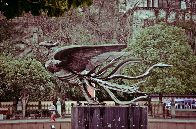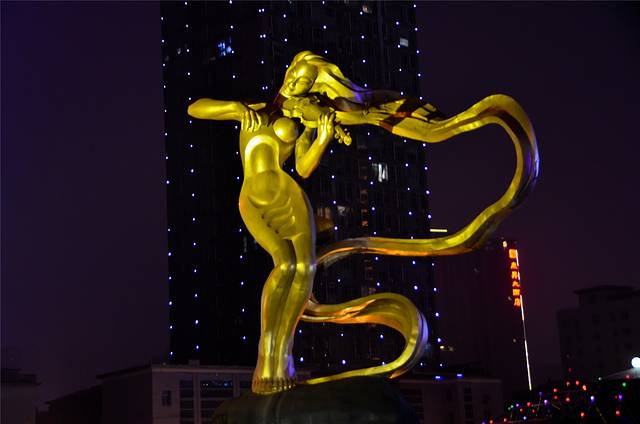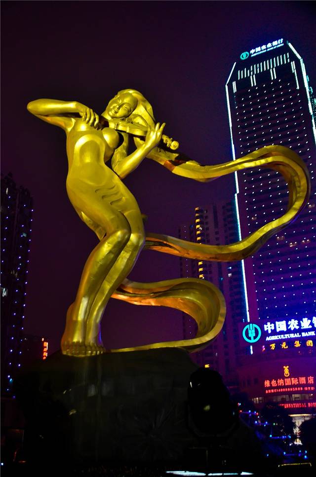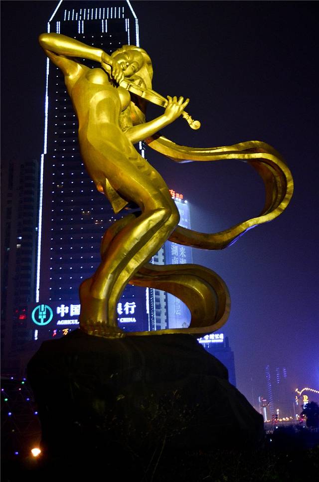 【芙蓉广场】,白天初次路过的时候,在车上就看到了这座精致漂亮的金雕塑。这会儿走楼梯上来平台视野更好,在上楼梯的时候,突然多了一丝感触,基本上所有的城市都差别不大,在这里游走和自己家乡其实没什么差别。