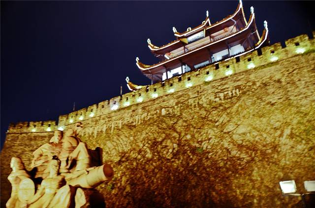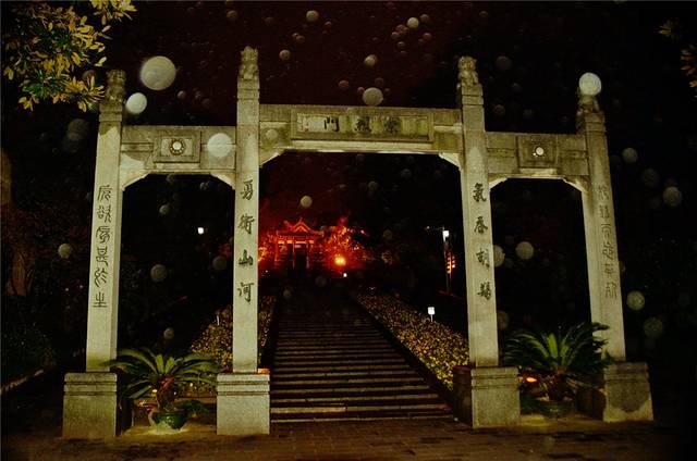 园子里很黑,很偶尔才看见一两个人。上“天心阁”的路有两条,一条是直接上“长城”,另一条是走下边,绕过去,走到后边还发现一个入口,不过都是关闭的了。转了一圈就离开了。因为总感觉里边有股阴森,园子里的路人也很古怪,好像莫名其妙在唱些什么,还是说些什么。