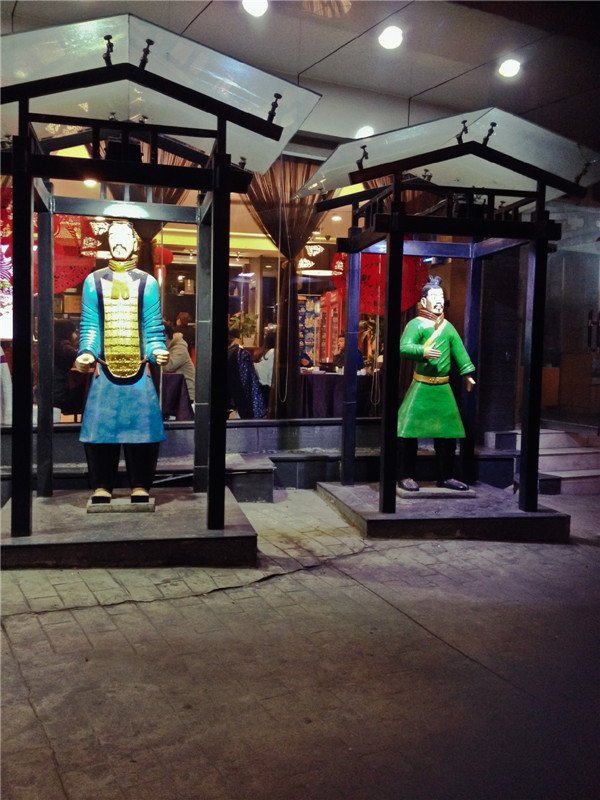 路过一家饭店装潢很抢眼,【秦皇食府】好像是湖南当地连锁饭店,不过长沙和秦始皇兵马俑有什么关系呢?出现在西安更合适吧。