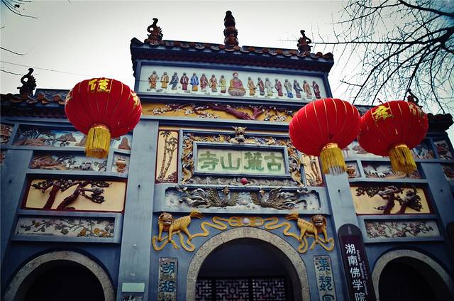 湖南的最后一天,本来计划八点半出发的,结果睡了个懒觉,启程时已经是十点多了。出门发现天上落了不小的雨,又急忙回去穿雨衣。在旅馆附近的银行换了功德钱,坐上车去往今天的第一站【开福寺】。