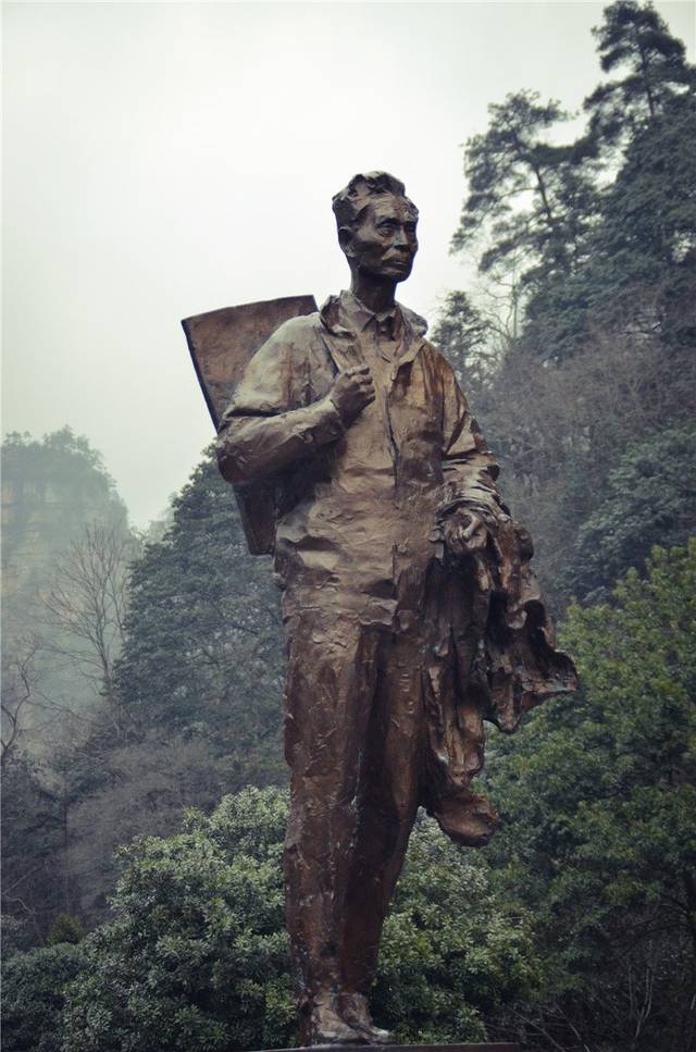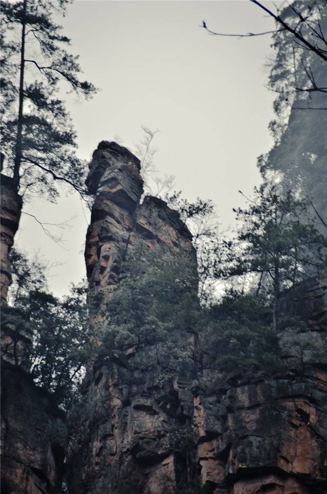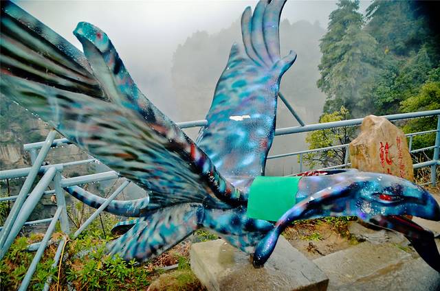 没走几步,在我没有任何准备的情况下就与【乾坤柱】不期而遇了。山路上又出现一个《阿凡达》电影里的道具,之前看电视就看到这个大鸟,以为是随便供人拍照的,谁知道又是私人收费的,一次10元。看到这只鸟做的如此粗糙,还是打消了和它拍照的念头。