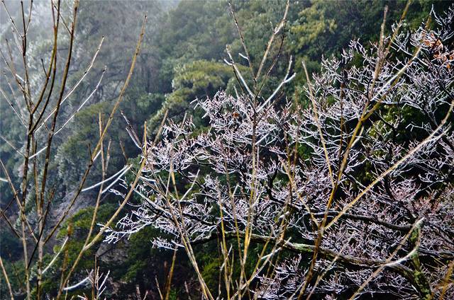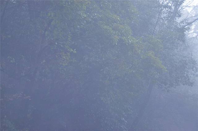 似乎越往前走海拔越高,相对的雾就越大,最严重的时候能见度基本不足十米,走在公路上时候还是感觉蛮危险的,不过这天并没有在路上看见车子,大概也是因为天气原因不准行车吧。
