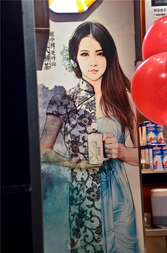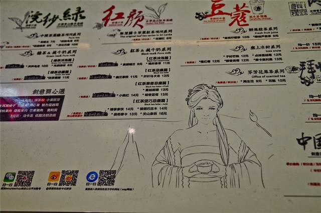 路过【黄兴街】对面的时候,发现了这家名为“茶颜悦色”的店。以前从来没听说过,只是店面装修很吸引我。店内放的歌曲都是中国风的,它打出的品牌就是古老江南茶艺文化和现代饮品的结合。只是看看,还是决定先去街对面的麦当劳赶快吃一顿,现在已经是晚上七点多了,一整天我还粒米未进。买了吃的坐下来才发现,走了一天,淋了一天雨星,这会儿头发都是湿的。快速的吃完套餐,依旧心系刚刚的奶茶店,想试一下。经亲切的店员MM推荐,我喝了一杯推荐款奶茶,这家店有很多的周边产品,只是当时身上的钱有限,告诉自己回家再找这家店好了,或是到网上去找一下。结果发现这家店和“帅哥烧饼”一样只专属于长沙。接过奶茶,店员还热情的告诉我把上边的坚果吃了然后把上边的奶油和下边的茶搅匀,当时光顾着感受她的热情,却忘记了搅拌,一层一层的喝,先喝了一堆奶油,有点腻,又喝茶,也不错的口感。