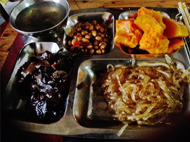 除了住宿,还要说到张家界最有名的美食“三下锅”,来这里之前就听到很多人提这道菜。当然我们的团餐中是没有这种美味的。和我们住在同一旅馆的团友中有晚上自己去吃的,不过感受就是没太大感受,只是腊肉和一堆菜放一起煮一下。其实想吃到最正宗最好吃的也不是很容易。据了解当地人大多会宰客的,导游提醒去餐馆吃饭的一定事先讲好价钱,最好先付钱,如果吃过再买单要价会高上好几倍。在张家界的几天早、晚饭我们都是在住宿的旅馆一楼,和被分在一起的几个团友一起享用的。
