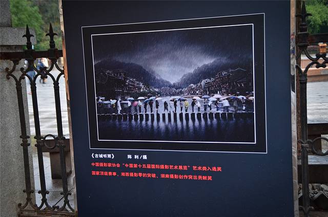 提到“凤凰”不得不再提到这里土生土长的艺术家黄永玉老先生,和表叔沈从文先生一样都是从这座跳岩走向了世界。顺沱江而下,过虹桥,临左岸有一突兀建筑,飞檐迭起,玲珑雅致,这里名曰“夺翠楼”,是凤凰古城中较有名的一个建筑,它更是有“吊脚楼情节”(亦是“凤凰情节”)黄永玉老先生的私人画室,从不对人开放。导游介绍黄先生家财万贯,最爱买房子和车子。还说中国著名画家包括徐悲鸿在内,去世以后的画作才卖到上百万,但是黄先生现在的画作就已经卖到了上百万了,并且是按尺寸计费的,好像一尺就能卖到六位数字。到他的家里来求画的人不少,或许是经历积淀的性格,据说在他家挂着这样的告示:当场按件论价,铁价不二,一言既出,驷马难追,纠缠讲价,即时照原价加一倍,再讲价者放恶狗咬之,恶脸恶言相向,驱逐出院。 即使在世人看来如此市侩,但他为自己的家乡凤凰也做了很多贡献,包括之前说过的酒鬼酒的包装等。的确民间也有不少对黄先生不好的评价,我想还是着眼于他的艺术作品吧,其他的部分就不探究了。