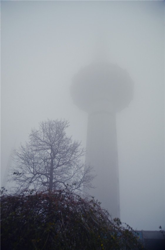【长沙电视塔】藏在雾气里,只能看见一个轮廓。这里打出广告——高空过江缆车,可以饱览全长沙的美景。不过今天这么大雾气天是看不到了,缆车也停开了,看到头顶上的缆车我在想这样全开放的缆车安全吗?除了缆车还有一项特色活动就是漂流。
