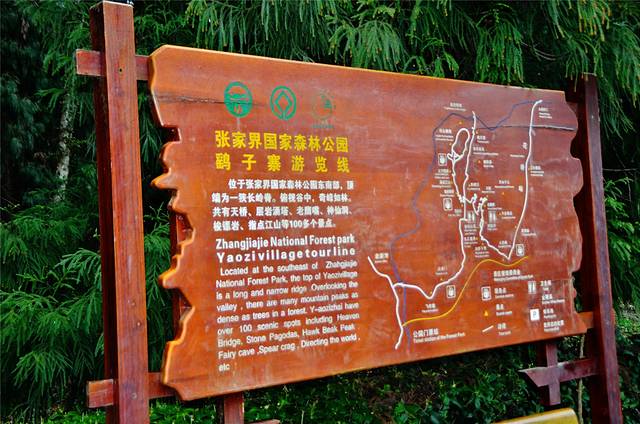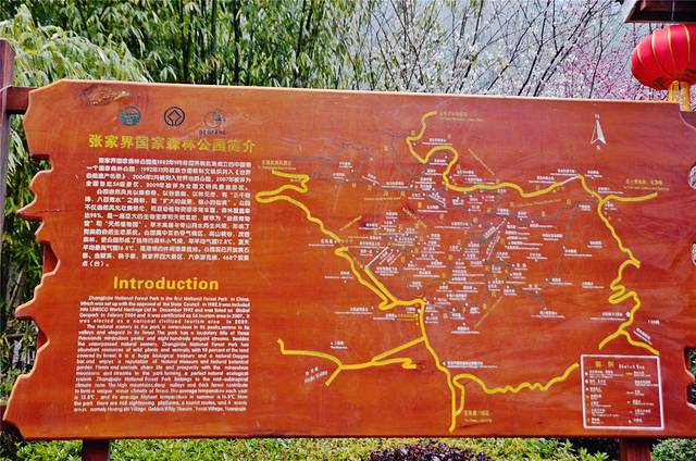 朝着一条大道走,看见对面有人来,就立即问前边是不是去看【乾坤柱】的地方,问过的人答案都只有一个“不清楚”。这时电话响了,是导游打过来的。原来我们走错了路,庆幸的是没走出太远。导游说我们是最后到的队友,需要加油了。车站有一张路线图,他比划着图对我们说,接下来就围着这座山一直向右,向右,向右。。。。就可以看到所有景观了。不要走向左的路,那些都是岔路,都是一个个观景台,去过之后还要再回来。导游说他会在【天下第一桥】的停车场等我们,在那里吃午饭。我脑子里想向右,向右,向右,。。不是就转一个圈吗?事实上真的是转一个圈。所有的美景都围着这座山而发生。
