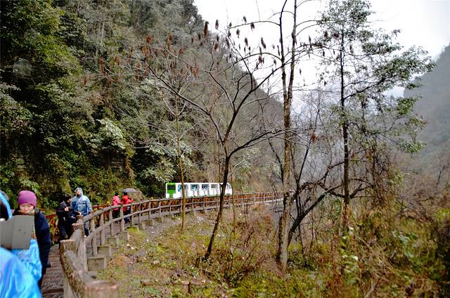 游览这个景区有两个方式,可以走木栈道,也可以选择坐小火车,导游说今天一天大家都没有怎么用到体力,建议就走走吧,不过当然不可能把十里路都走过来。