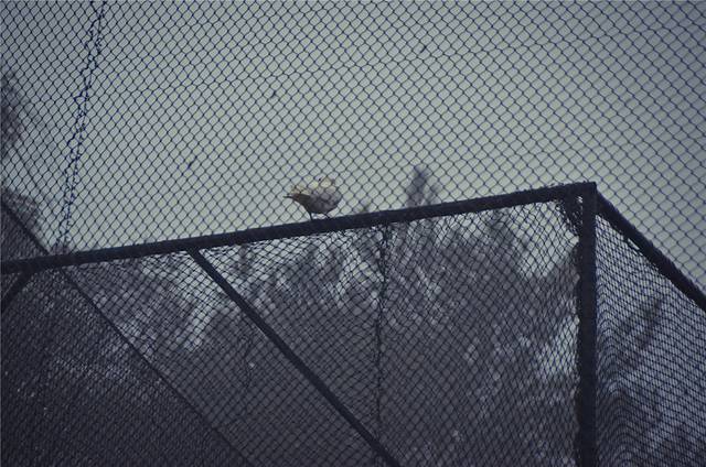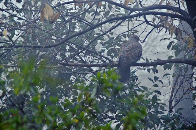 前面基本都是白色的,隔一段就会在对面渐渐地出现行人。走到【观光长廊】时候雾气是最大的,长廊外什么都看不到,也不知道没有雾的时候山下的风光是什么样子。不过倒是在树上看到一只叫不出名字的大鸟,引得不少人拍照。