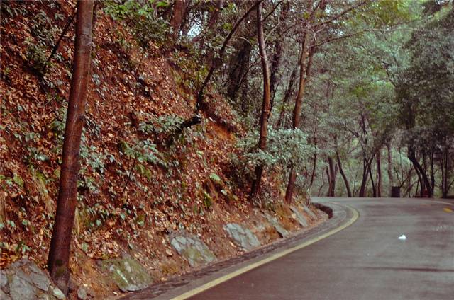 山中宽阔漂亮的大道,还来不及多拍几张照,大大小小的车子已经络绎不绝,因为这会儿基本是游客出山的时间了。