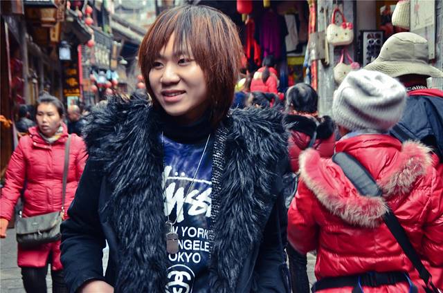 当旅行大巴把我们送回最初坐上车的地方,这段湘西旅程预示着结束了。这几天我们遇到的人真是各有特点,绝对没有雷同。他们也属于我这次旅程的一部分,不能不提,不能忘记。除了黄凰还有跟她她一起的长沙阿姨、大概上中学的儿子。还有那个爱吹牛、故意摆阔的上海大块头男人,嘴边总带着自己的老婆,却不知道为何自己出来旅游,身上的装备并没有什么奢侈,更确切说非常“简朴”。但是嘴上却爱耍派头,看“魅力湘西”一定要看VIP,导游订不到VIP,他就一路碎碎念。几天都没有洗头,乱的像鸡窝一样,就带着一顶毛线帽。他说这里找不到“洗头房”。手里永远拿着一个看似很便宜的卡片照相机,却总和别人说,我的单反太累赘不想带。在张家界的两天,我们是住在同一家旅馆,所以吃饭也在一起,第一天晚上我们下楼,吃饭时候,他是第一个也是唯一一个坐在楼下,好像第一次和他说话,他喊“下来吃饭咯!”我不太喜欢吵,知道如果和他坐一起肯定要说个没完,当时有两张桌子,我选择了另一桌。他主动让我们坐过来,我也无法推脱了。坐在一起,他就在旁边嘴里一直叽里呱啦叽里呱啦~~~之后好像是什么原因,要换一下桌子,我和同伴换了另外一桌,本以为就甩掉了他。谁知他阴魂不散的一起和我们换了过去。呵呵,不过这种随时都可以和你变成熟人的人也蛮可爱的。还有那两个看着像大学生的男孩儿,之后发现他们买票用军官证,但看着不像当兵的,不了解缘由。其中一个男生就是在袁家寨子“做了新郎”,当天早上相机出了问题还跑来向我求救。 印象中还有两家人不能不提,一家是带着上小学的孩子的三口人,好像刚从海南玩过来。男孩一路嘴像租来的一样,他口中的“爸比”一路夸大海口,我唯一记住的一句话就是“我儿子在北京上贵族学校~!”母亲很不会管教孩子,在路上给孩子买了个可以射飞镖的木质弓箭,车上射到过好几次人,每次大家都把箭交给她母亲劝说别让孩子玩这么危险的东西,但这位母亲“哦”的同时一只手就把箭给孩子了;另一家,,呵呵~~和上一家一路很是要好,情投意合仿佛一家人,那个走一路说一路同样爱摆阔的女人,到哪里都让导游帮她找最好的旅馆,还有她那不爱说话的傻傻的儿子,下了车我们在过街天桥下还看到他们在等接他们去机场的车,虽然之前几天都没有和他们说过话,不过这时候遇到了,倒是觉得亲切,我问她是哪里人,她说自己是在宁波工作,是山东人。一路听她讲话就觉得有山东味儿,果然没听错。说了这简短的几句我们就道别了。也许永远也不会再见了。这些人应该永远也不会再见了。