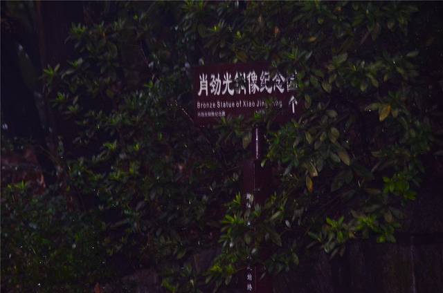 一块路标指向一个台阶“肖劲光铜像纪念园”。肖劲光是谁?虽然筋疲力尽,不过想到也许这次离开,就永远也不会再来了,还是拖着腿走上石阶,一探究竟。上边是一块不算太广阔的平台,如果是晴天就可以眺望山下的美景。一座雕像被绿色植物包围着。肖劲光(1903——1989)离开的时间不算太久,查阅资料才知道原来他是中国人民解放军开国十大将之一。