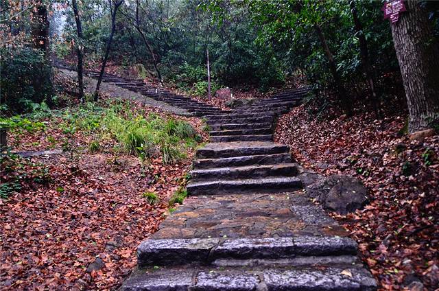 岳麓山经过了很完善的开发,山路多为柏油马路式。去到一些主要景点都要离开柏油路,改走不时出现的石板路。