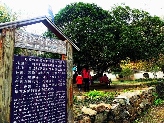 丹桂园建筑一般,没什么可看的,但是这里种植了两株400多年树龄的丹桂,还有一段传奇的故事,据说是当地夏姓祖先用船从江南运来,高约5米,树冠宽阔,枝繁叶茂,堪称连云港的桂花王,每年农历八月,花开满枝,香飘十里,漫步在这里,处处都沉浸在浓郁的桂花香气中。