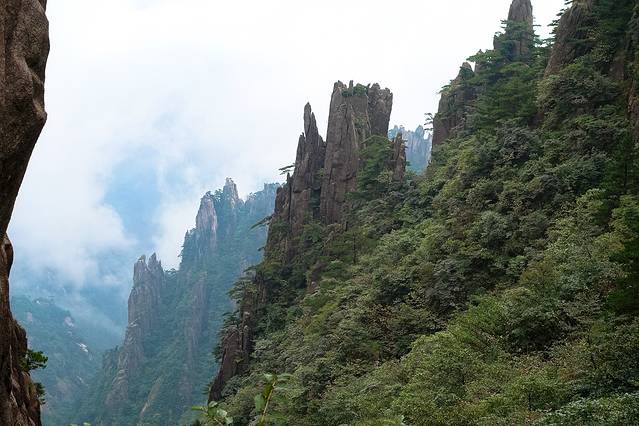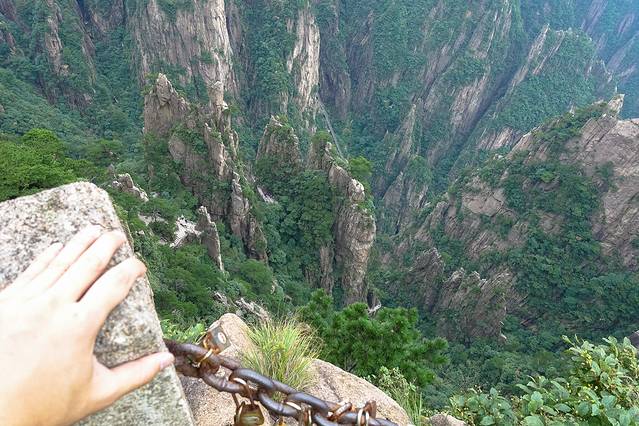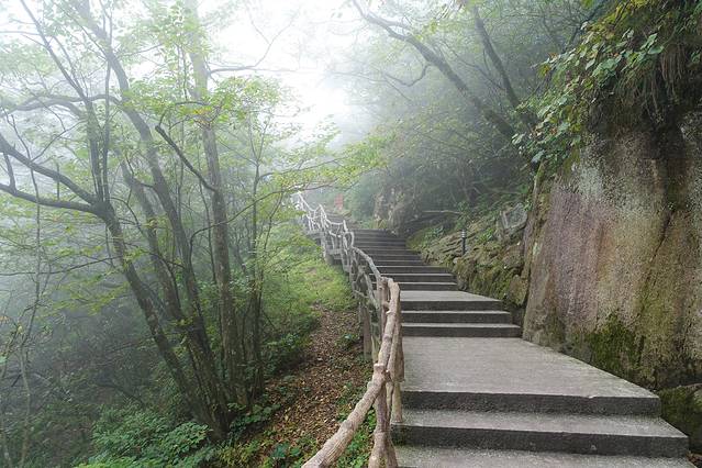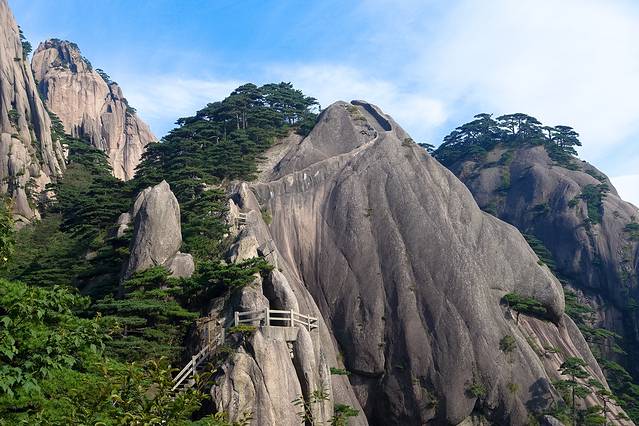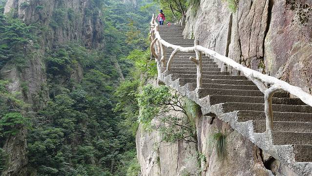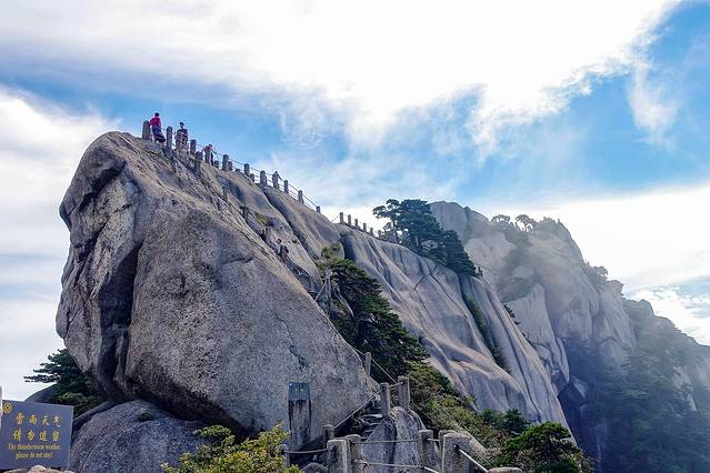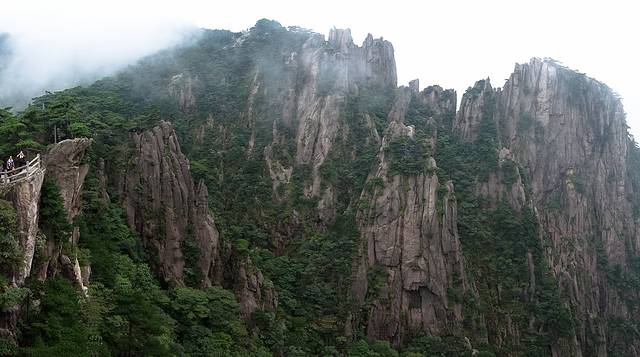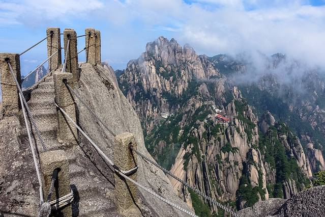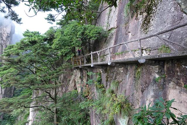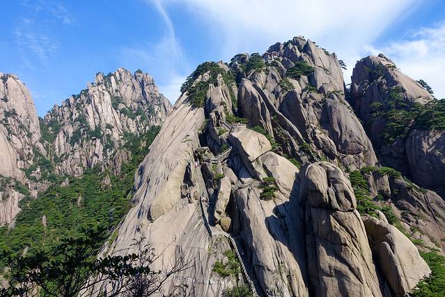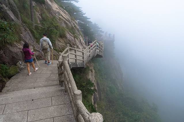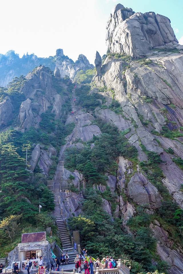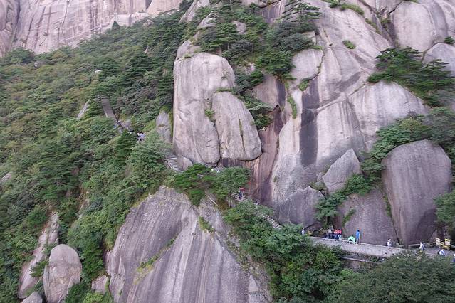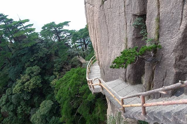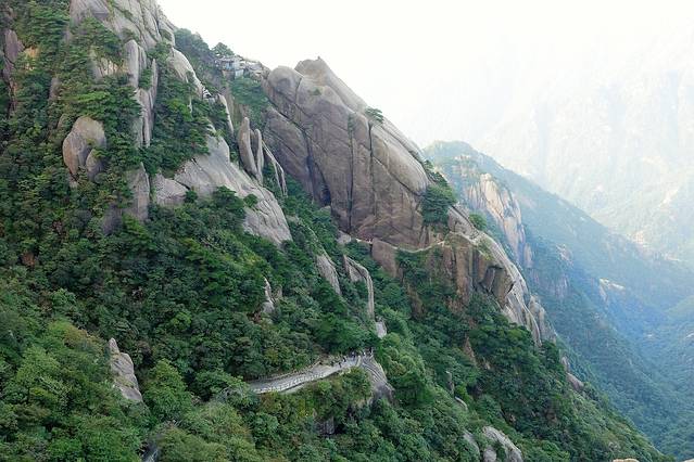 你看这沿着垂直的石壁蜿蜒而上的道路,真的特别想要挑战,过几年一定要再来黄山。