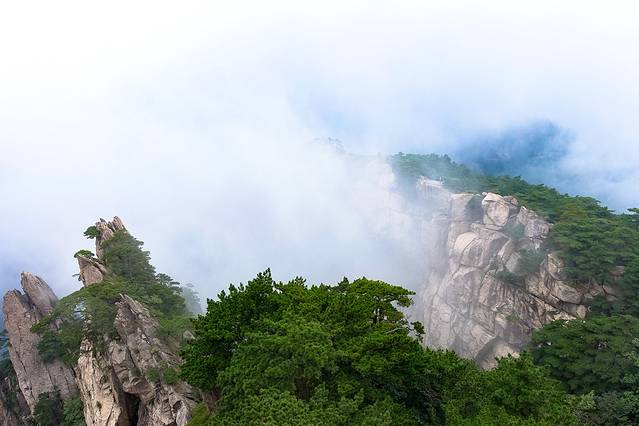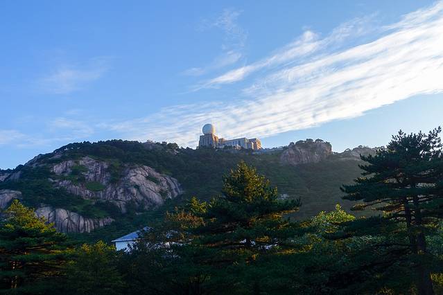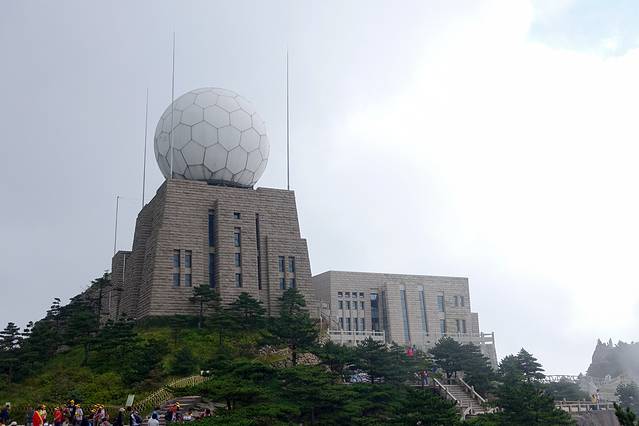 光明顶位于黄山中部,海拔1860米,是黄山第二高峰。光明顶山峰比较平坦峰顶平坦高旷,日光充足,“光明顶”一名由此得来。顶上还建有光明顶山庄和黄山气象台,气象台顶上的白球特别醒目,这里是一个游客聚集的地方。