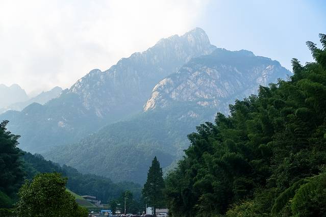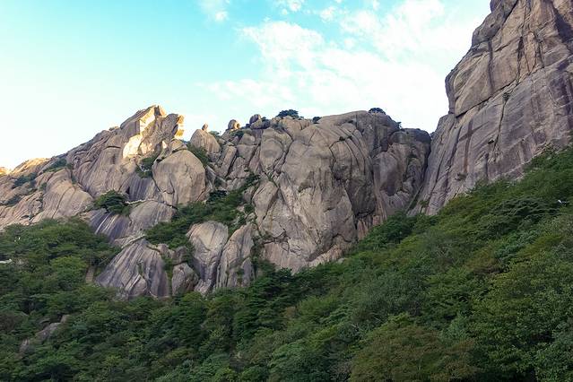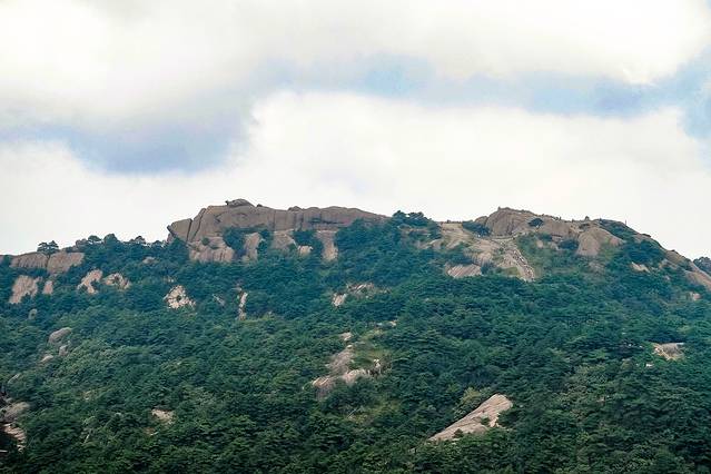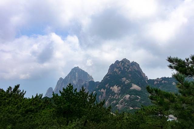 还没有开始爬山我便觉得黄山名副其实了,因为很少有什么山让我一看到就觉得特别想爬。蔓延的山脉对我并没有什么吸引力,但是黄山就那么突兀的耸立在那里,远远的看到他就那么与众不同。显得特别高大,且裸露的岩石众多,树木的覆盖反而不多,如果下雨了一定会堆砌起来像雪山一般。