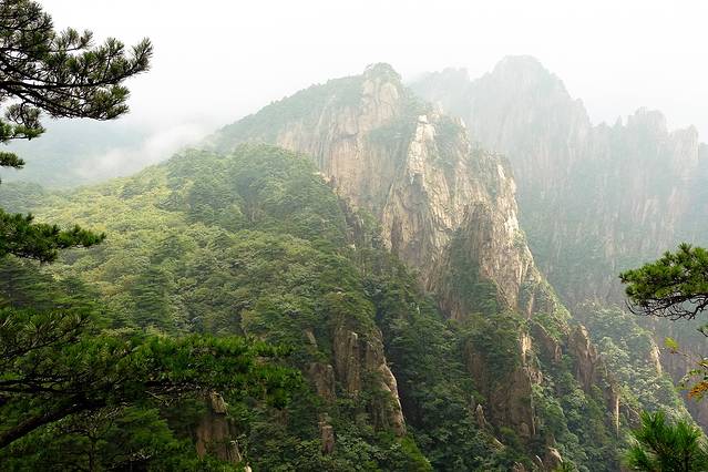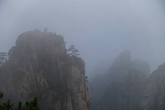 大名鼎鼎的始信峰,不到始信峰、不见黄山松,刚才一阵大雾又差点把它给漏了,走过了一段才露出了真容。