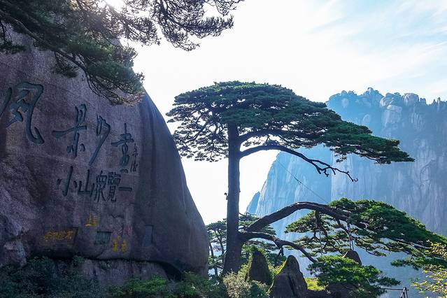 黄山十大名松之一,竖琴松以形取胜,它主干挺直,顶状如伞,形似竖琴。它就在路上等着你,不会错过的
