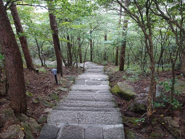 天都峰这一路爬下来从出发到慈光阁大概用了7个小时,比昨天一整天的体力消耗还要大,且不说陡峭的天都峰,就是天都峰下来之后还有漫长的一大段台阶,膝盖的损耗真的是非常巨大,走到后面每个人的膝盖多多少少都酸痛了,甚至于缓步行走走不动而逼着自己往下飞奔想着早点脱离苦海。