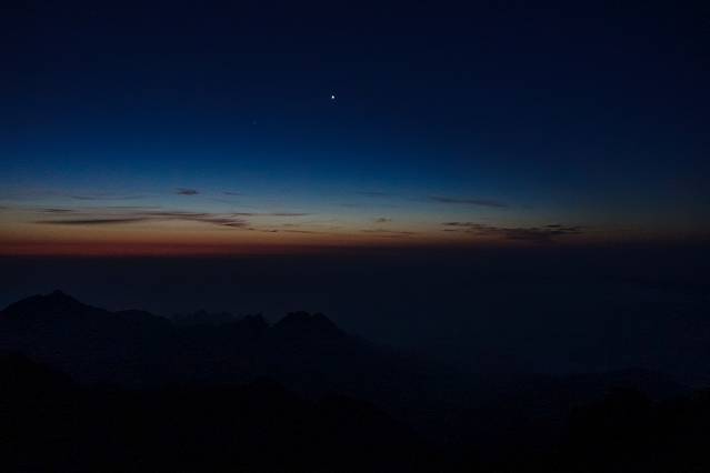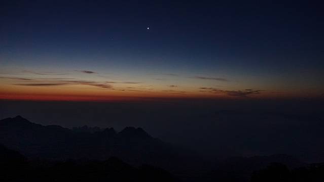 这是近来睡得最差的一天了,没有之一。晚上想着早点睡觉第二天起来看日出的,反正山顶也没别的事情干,所以八点大伙就熄灯了。